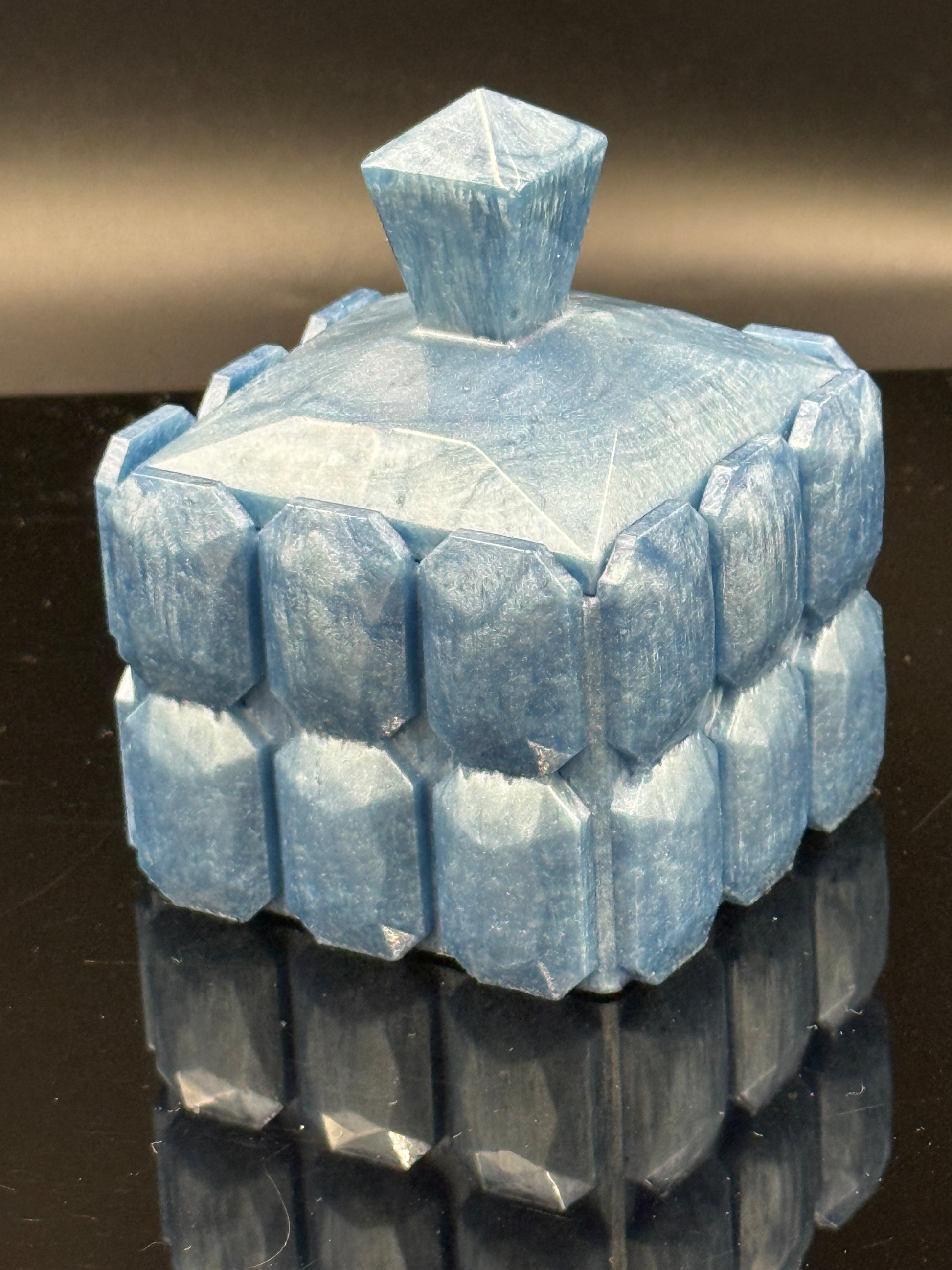 Bring elegance and craftsmanship into your home with this stunning faceted resin storage box. Cast in a shimmering blue resin, the box reflects light like carved gemstone, making it a unique blend of art and function.
